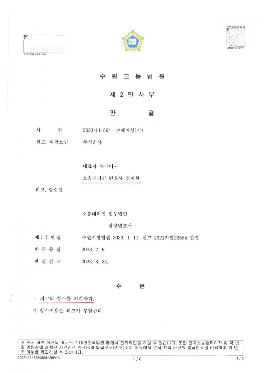 - 사건 : 수원지방법원 2021가합23554호, 수원고등법원 2023나11664호