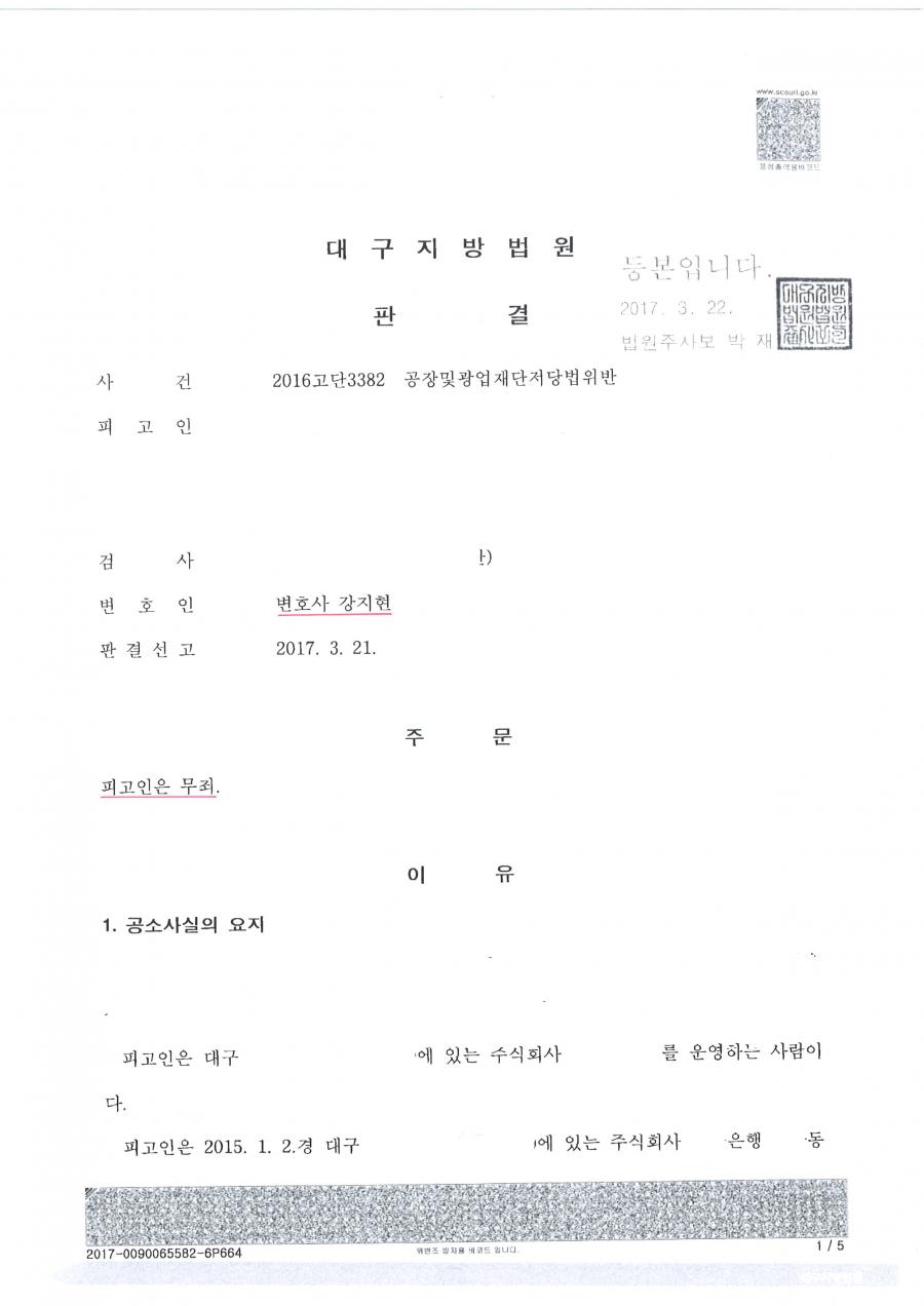 - 사건 : 대구지방법원 2016고단3382 공장및광업재단저당법위반