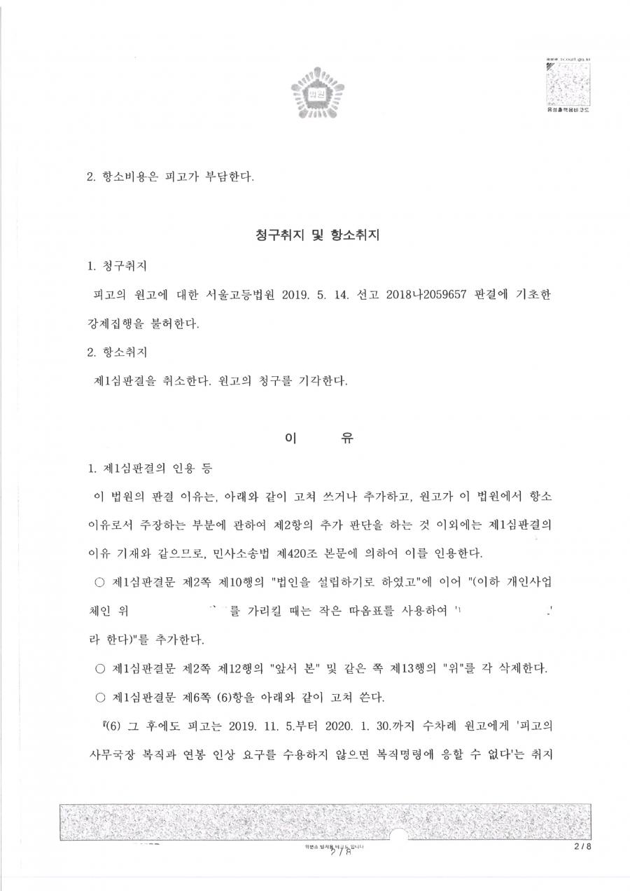 - 사건 : 서울고등법원 2020나2046647 청구이의